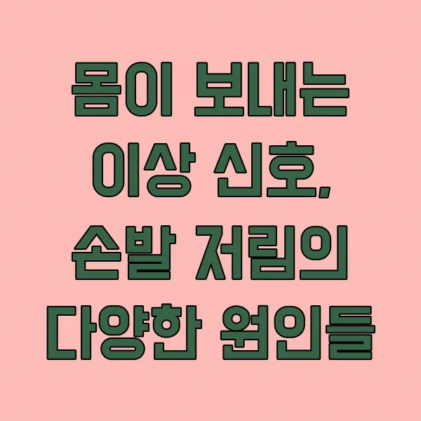 갑자기 손이나 발이 찌릿찌릿하거나 감각이 둔해지는 경험, 한 번쯤은 있으셨죠? 단순한 피로나 일시적인 불편함으로 여기기 쉽지만, 때로는 우리 몸이 보내는 중요한 신호일 수 있습니다. 오늘은 손발 저림 증상의 다양한 원인들을 함께 알아보고, 혹시 나에게 해당되는 부분이 있는지 꼼꼼히 살펴보겠습니다.